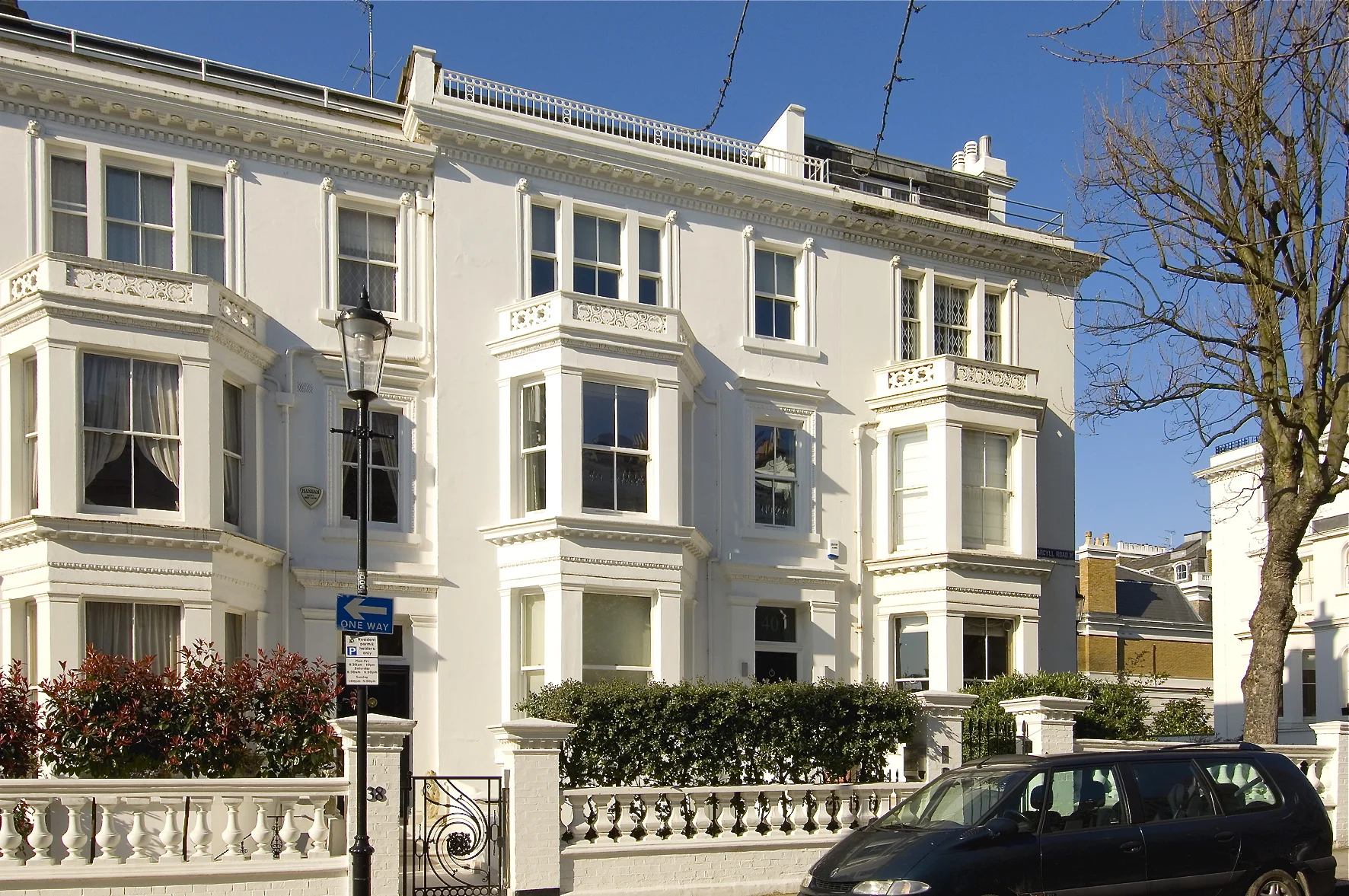 A beautiful stucco, bay fronted Victorian period 5-storey, 6-bedroom, Kensington, London house. The residence has been totally refurbished & modernised for family city living. The interior has blended period features with contemporary elements, such as the Gaggenhau kitchen & hole-in-the-wall fireplaces. A fusion of old & new.